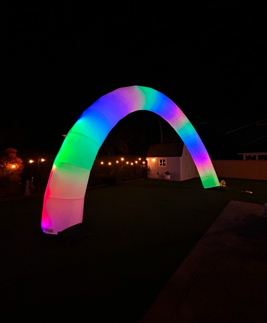 Transform your event into a vibrant spectacle with our Inflatable Color Changing Arch. Standing at an impressive 11.5 feet high and spanning 26.5 feet wide, this inflatable arch is designed to capture attention and elevate any occasion. Featuring multi-colored LED light strips, the arch can cycle through seven dynamic colors, offering endless possibilities for customization. Whether you’re planning a wedding ceremony, an outdoor exhibition, or a promotional event, this arch will ensure your entranceway is nothing short of spectacular.