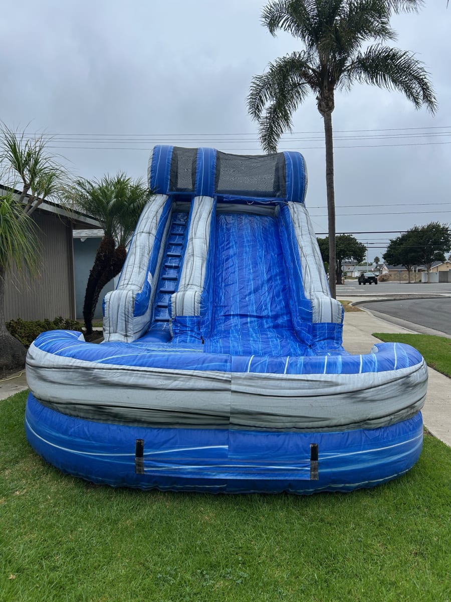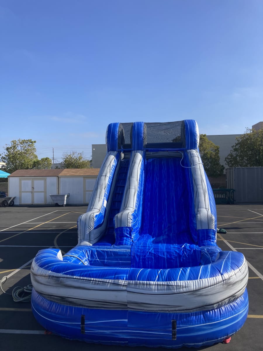 🌊 Get ready for an epic adventure with the Blue Wave Water Slide! Standing at an impressive 15ft tall, this inflatable slide is sure to make a splash at your next summer party. 🎉
